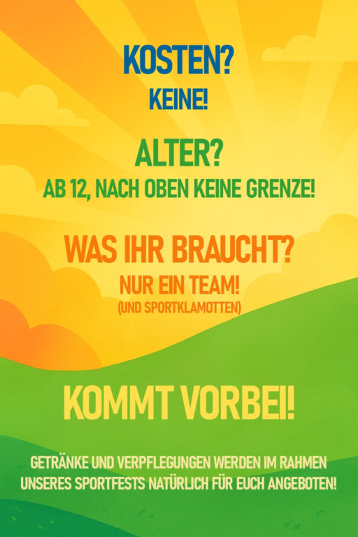 Rund um unser Sportfest stehen die folgenden Arbeitseinsätze an – wir freuen uns auf eure Unterstützung!
